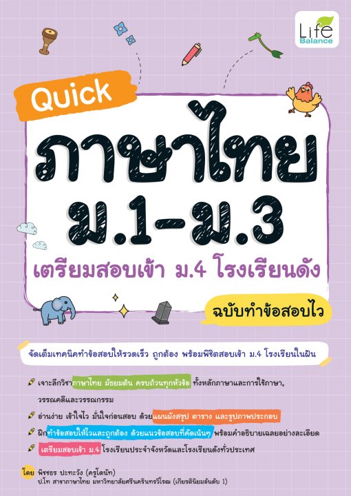 Quick ภาษาไทย ม.1-ม.3เตรียมสอบเข้า ม.4 โรงเรียนดังฉบับทำข้อสอบไว/ โดย พิชชชร ปะทะวัง.